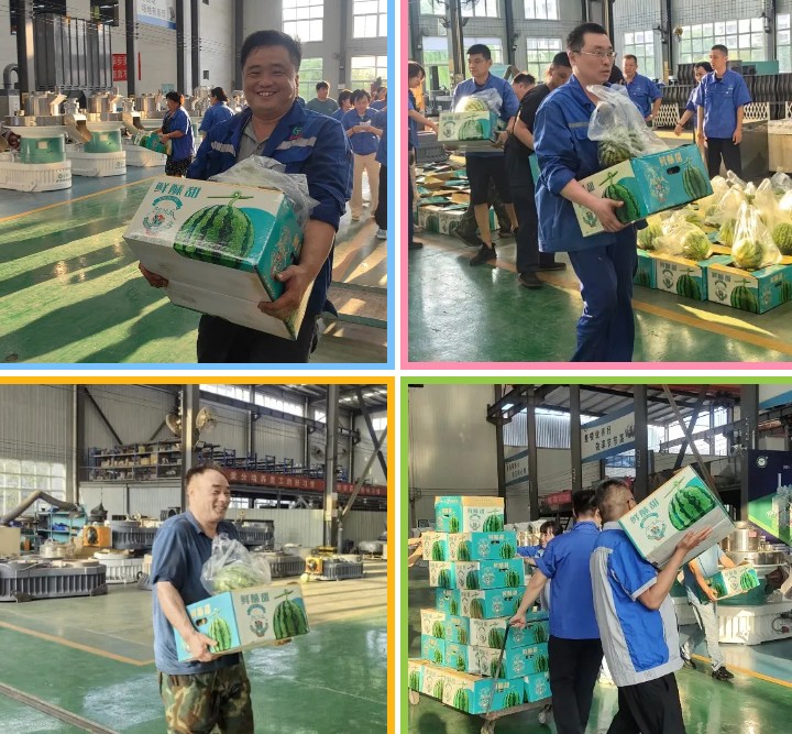 陽光透過廠房的窗戶灑在堆積的西瓜上,也灑在職工們的笑臉上。機(jī)器依舊在高效運(yùn)轉(zhuǎn),生產(chǎn)的節(jié)奏不曾停歇,但此刻,每個人的心頭都多了一份清涼與干勁,仿佛這清甜的西瓜,也為接下來的工作注入了新的動力。