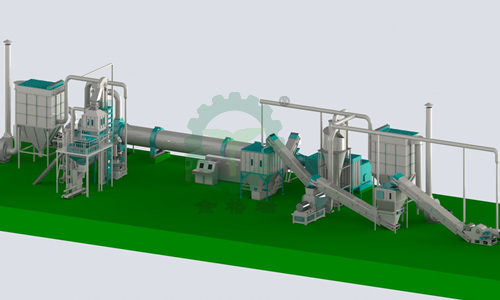 原料水分在30%-40%之間,需配備滾筒烘干機(jī),時產(chǎn)1-2t木材顆粒的烘干筒尺寸為1.2m*12m